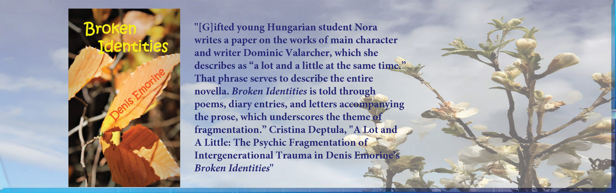 In Denis Emorine’s new novella Broken Identities, gifted young Hungarian student Nora writes a paper on the works of main character and writer Dominic Valarcher, which she describes as “a lot and a...
